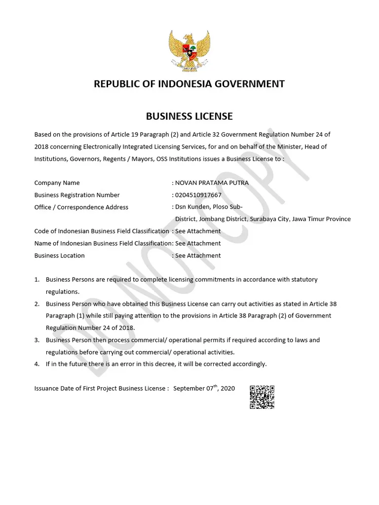 さらに、業種分類(KBLIコード)の選定は極めて重要です。インドネシアでは事業内容ごとにKBLIコードを登録し、そのコードに基づいて営業許可や追加ライセンスが発行されます。実際の事業内容とKBLIが一致していない場合、税務調査や行政監査で問題となる可能性があります。進出前に事業モデルを分解し、将来展開も見据えたKBLI選定を行うことが不可欠です。